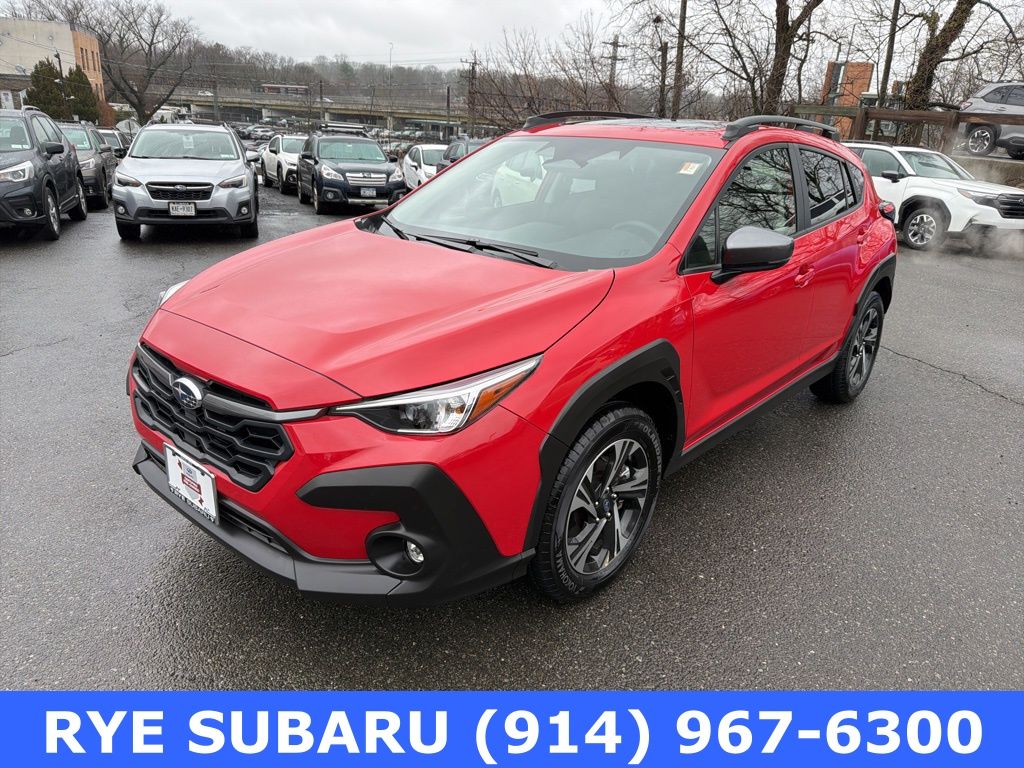 New Price! Recent Arrival! Certified. CARFAX One-Owner. Clean CARFAX. Pure Red 2024 Subaru Crosstrek Premium Blind Spot Detection w/ Rear Cross Traffic Alert + All Weather Package + Power Driver Seat + Power Moonroof 2.0L 4-Cylinder DOHC 16V Lineartronic CVT AWD 10-Way Power Driver's Seat, All-Weather Package, Blind Spot Detection w/Rear Cross-Traffic Alert, BSD/RCTA & Moonrf & All Weather Pkg & Pwr Dr. Seat, Heated Exterior Mirrors, Heated Front Seats, Heated Wipers, Power Moonroof.