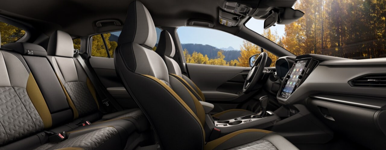The Crosstrek offers a straightforward and functional interior with available upgrades like an 11.6-inch touchscreen, wireless smartphone connectivity, and Subaru's EyeSight driver-assist features. Its layout is designed for ease of use, making it a practical choice for daily driving.